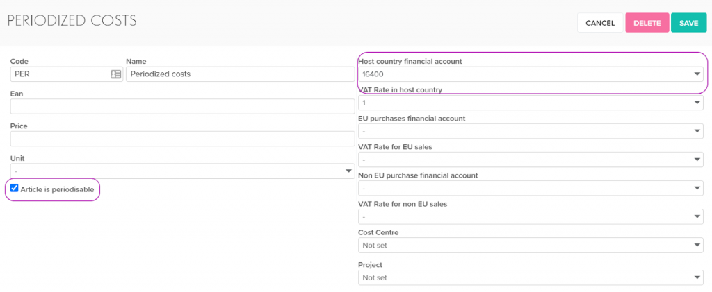 - Enter the purchase invoice, select the item to be periodized as the item: