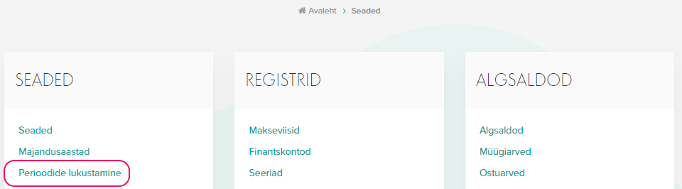 Perioode saab lukustada minnes Seaded -> Perioodide lukustamine -> Loo uus